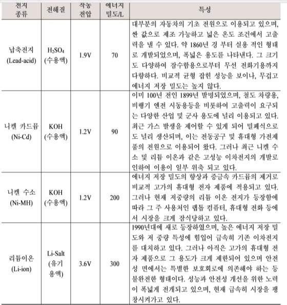 - 낮은 전압에도 불구하고 저항이 작기 때문에 큰 전류를 필요로 하는 휴대용 기기에 적합